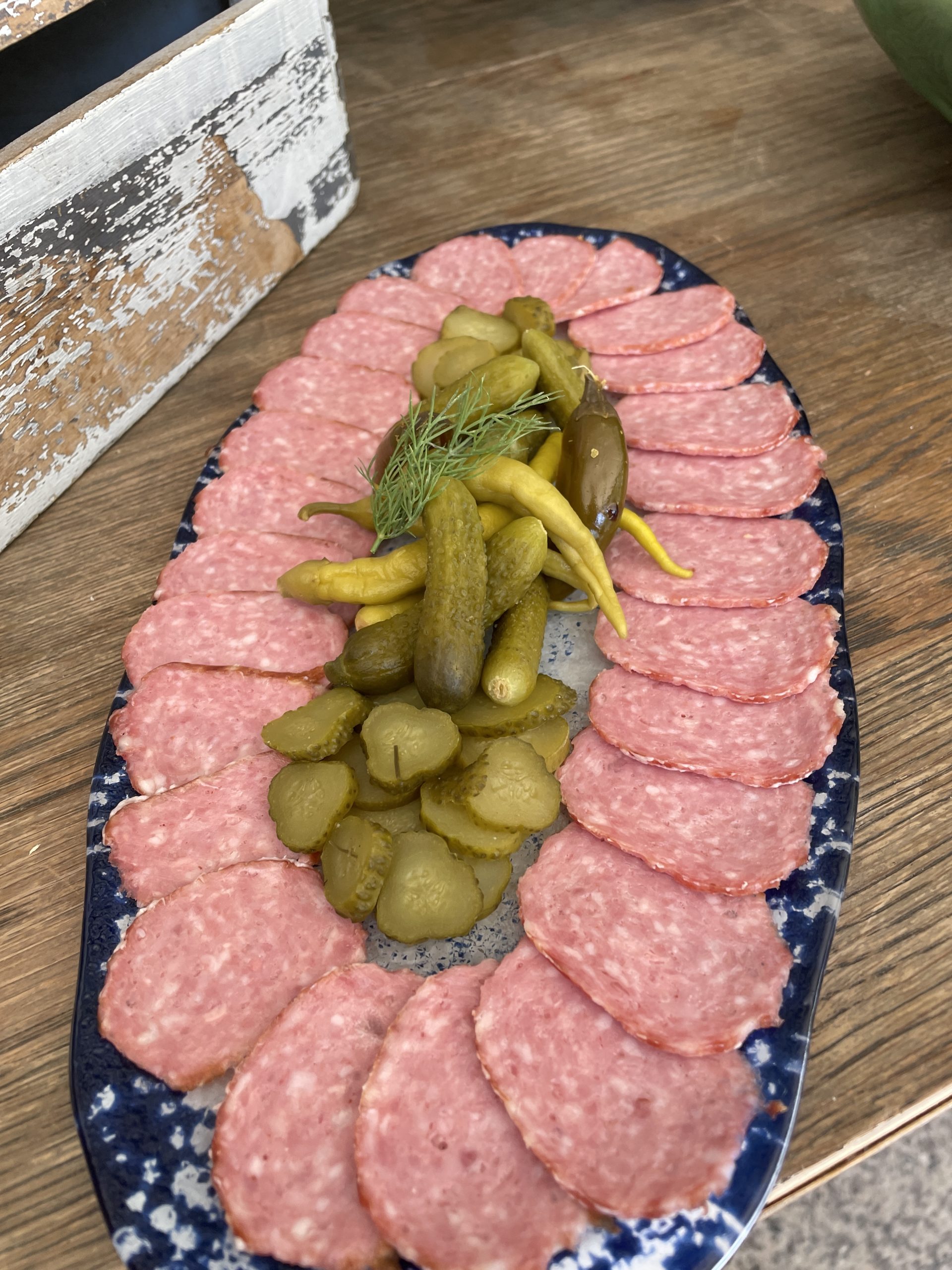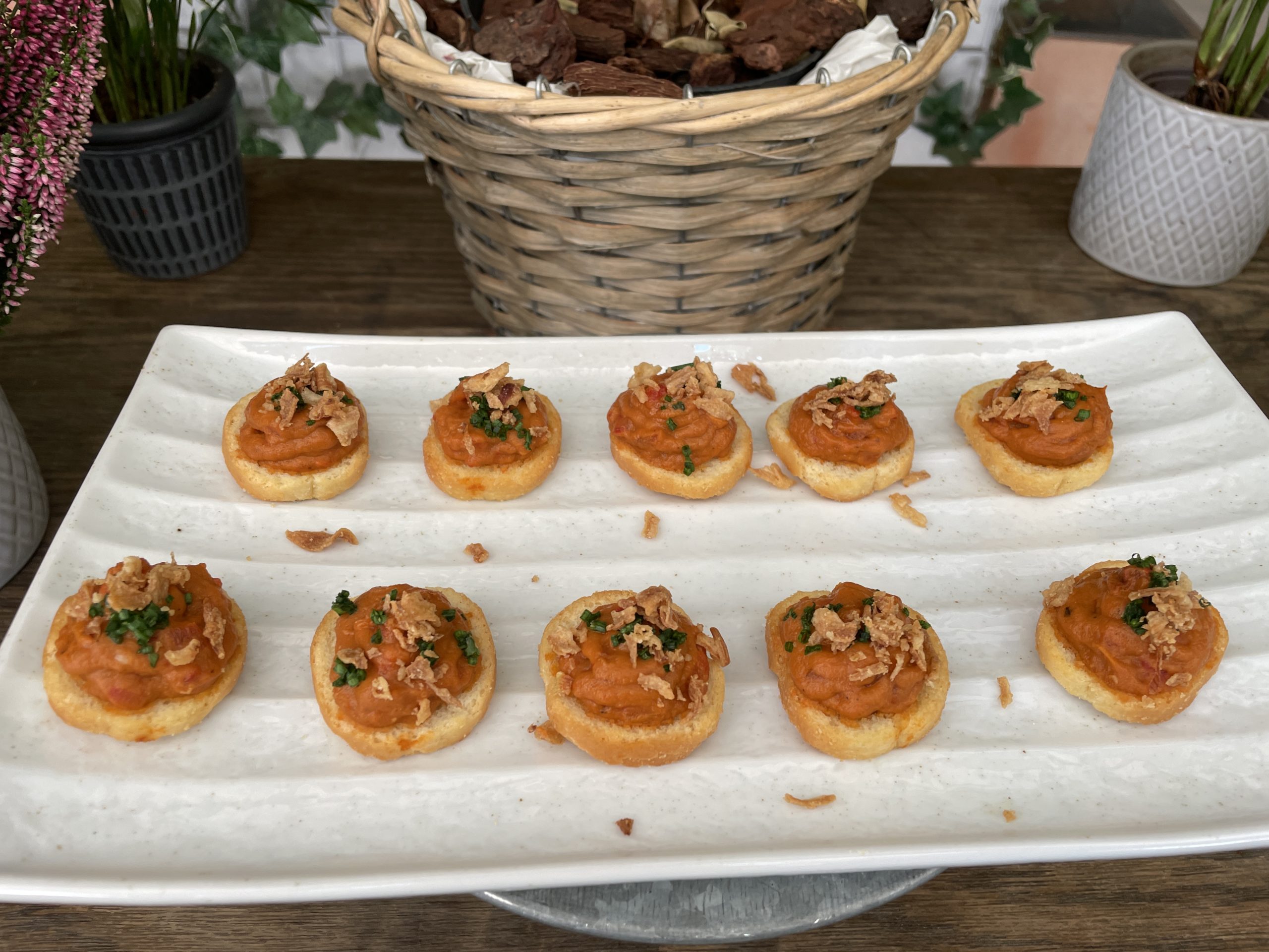 No faltaron los encurtidos, las cremas frías y los bocados en miniatura que daban color y textura a una mesa repleta de contrastes.