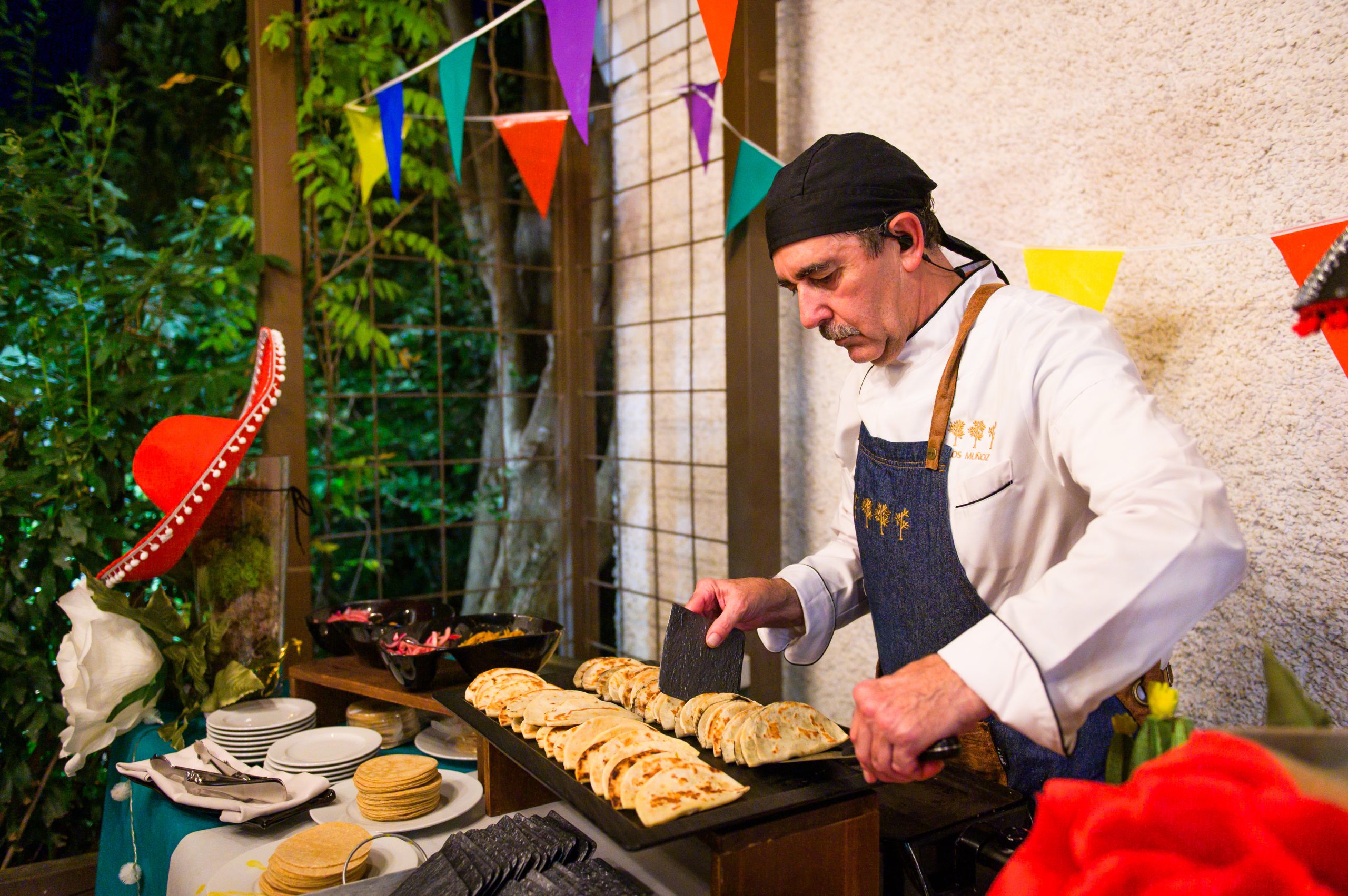 Mucho más que un buffet, la Estación Mexicana de La Quinta de Illescas es una experiencia interactiva. Con un chef experto a los mandos de la plancha, los invitados disfrutan de un auténtico show cooking o cocina en directo. Ver cómo se doran las tortillas de maíz artesanales y se monta cada taco al momento, garantiza no solo la máxima frescura de cada bocado, sino también un espectáculo visual que anima a todos los asistentes a unirse a la fiesta.