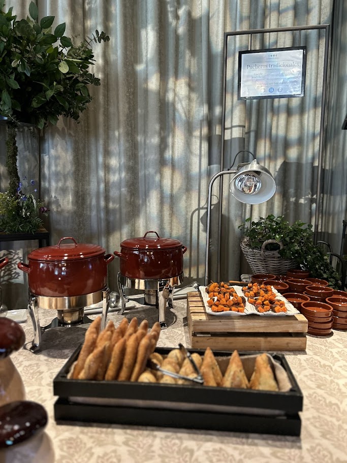 En La Quinta de Illescas sabemos que la auténtica cocina de cuchara siempre triunfa. Si buscas el sitio para bodas ideal o un lugar para eventos que deje un recuerdo cálido y delicioso en tus invitados, nuestra clásica estación de pucheros está compuesta por: